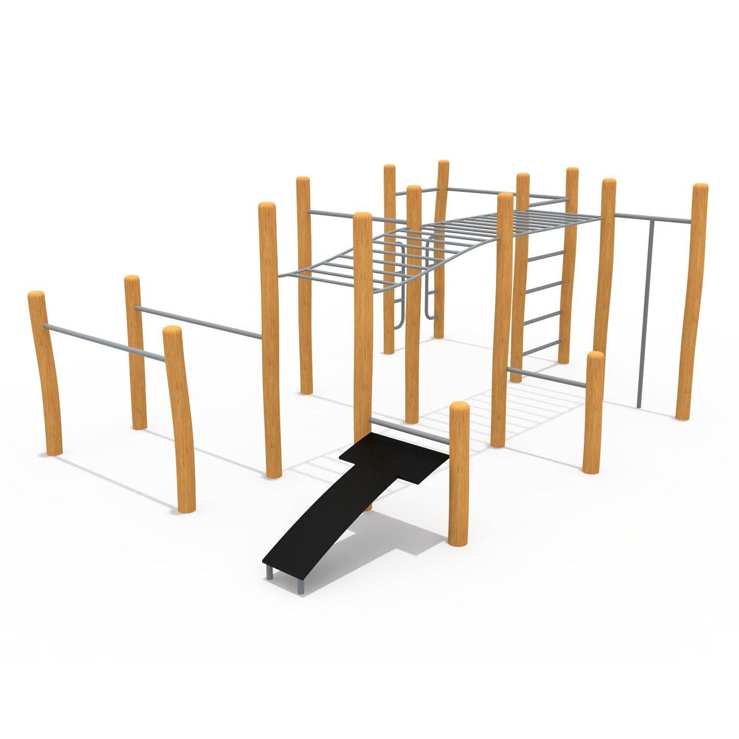Impulse el rendimiento en entrenamiento al aire libre con el Circuito de Calistenia en Madera, una estructura avanzada diseñada para satisfacer las necesidades de calistenia y entrenamiento funcional en entornos profesionales. Con 10 estaciones integradas en un solo espacio, este circuito proporciona a los usuarios la flexibilidad de realizar una amplia gama de ejercicios, desde rutinas básicas hasta movimientos dinámicos y avanzados, fomentando la creatividad y la progresión técnica.