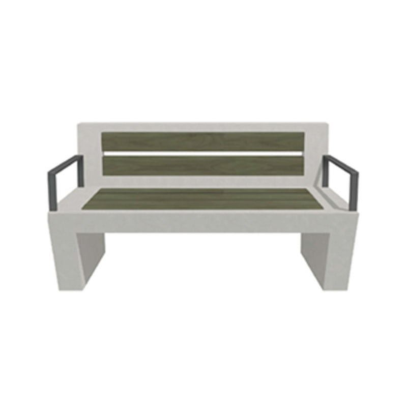 Su diseño es de una mezcla de Madera y Hormigón que cuenta con un perfil de corchete que proporciona un espacio libre debajo del asiento, brindando comodidad para los pies del usuario y en algunos modelos cuenta con apoyabrazos de acero para entregar una mayor inclusividad y elegancia.
